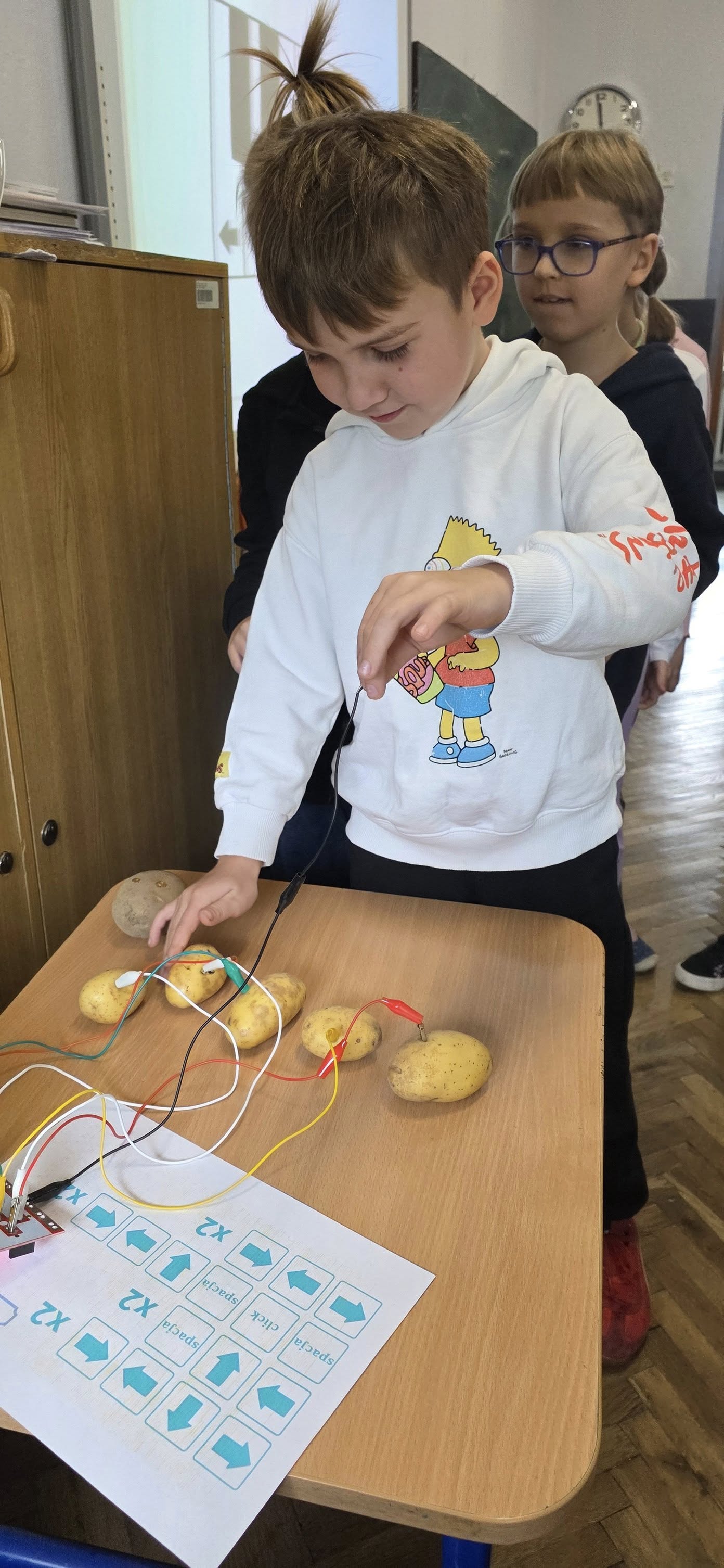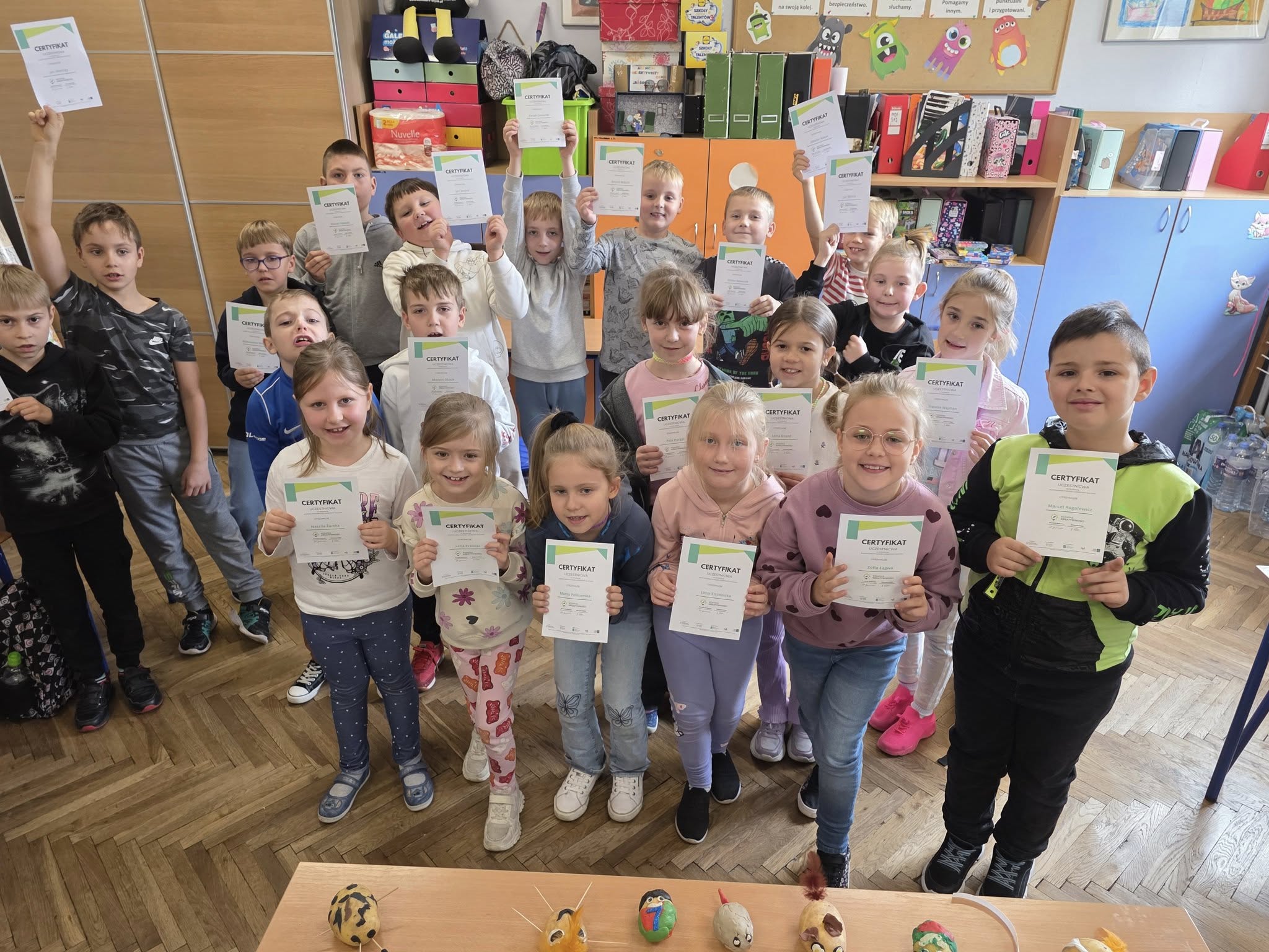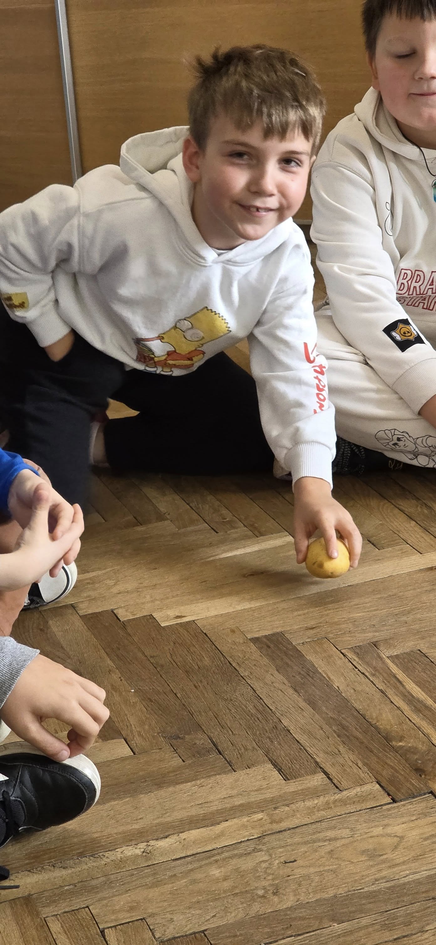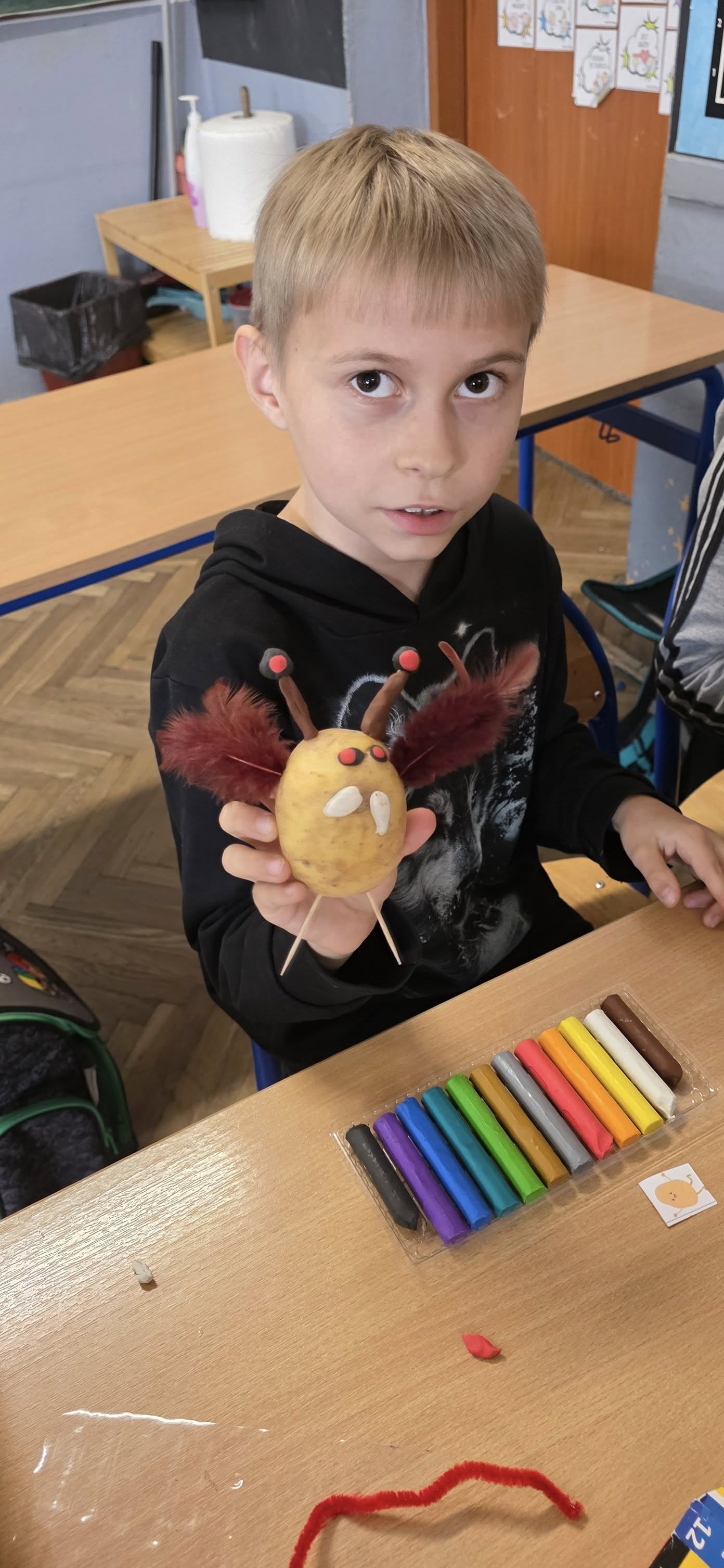 Dzieci poznały bliżej sąsiada Polski i dowiedziały się, że BIAŁORUŚ ZIEMNIAKIEM STOI. Podczas zajęć ziemniak zamienił się w szczotkę do włosów, chomiczka, piłkę, pomadkę a nawet perfumy, których zapach unosił się w powietrzu przez całe zajęcia. Drugoklasiści zapoznali się z obrazem Van Gogha "Jedzący kartofle" oraz pracami Walancina Bojki, który tworzy z ziemniaków podobizny rozmaitych postaci. Dzieci bez trudu rozpoznały większość postaci, a następnie same przystąpiły do działania. Z ich ziemniaków powstały przeróżne zwierzęta, rzeczy i postaci. Podczas zajęć dzieci poznały fazy rozwoju i właściwości ziemniaka, obejrzały film z białoruskim tańcem "Bulba". Na koniec drugoklasiści wykorzystali bulwy ziemniaków do tworzenia muzyki. Zajęcia zakończyły się wręczeniem certyfikatów.