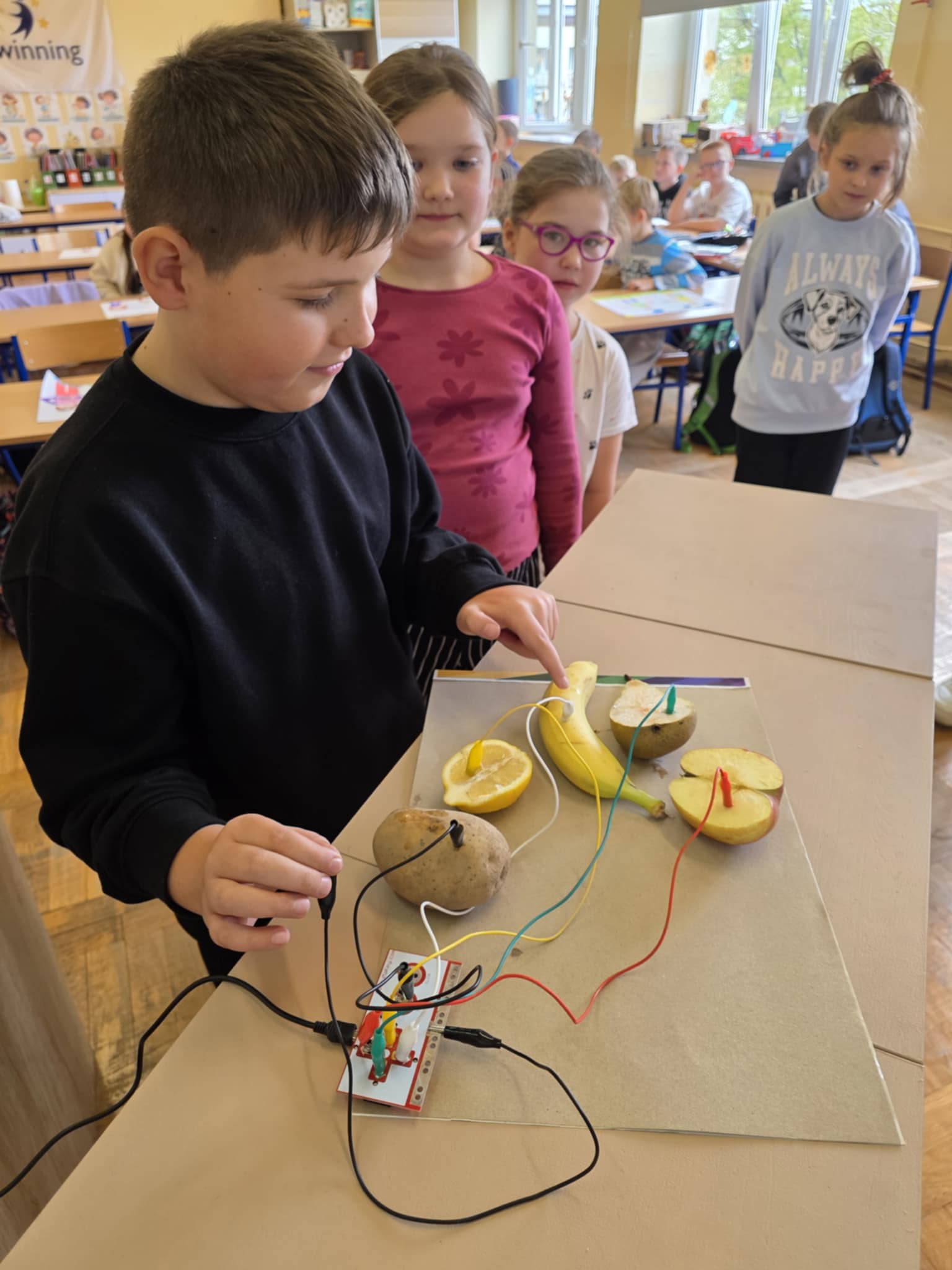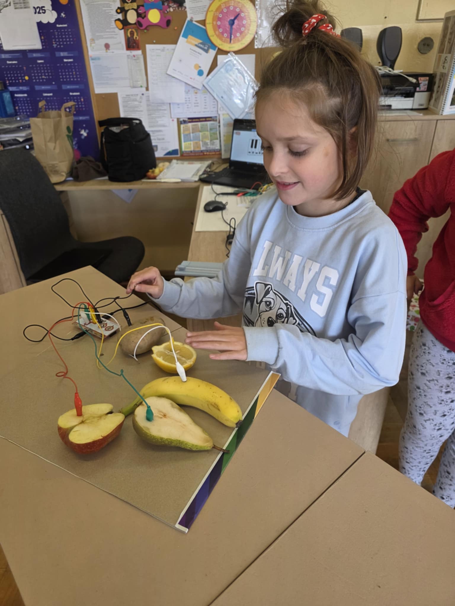 Zainspirowani eksperymentem parterów projektu ze Słupska sprawdzili czy owoce mogą zastąpić tradycyjne instrumenty. Okazało się, że tak Dzięki wykorzystaniu MakeyMakey udało się to doskonale, zresztą oceńcie sami.